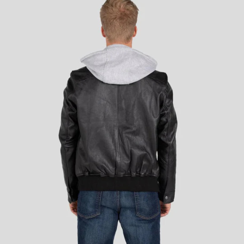 This Black Removable Hooded Leather Jacket is the perfect addition to your wardrobe. Made with high-quality leather, it provides both style and durability. The detachable hood adds versatility, making it suitable for all seasons. A must-have for any fashion-forward individual looking for a timeless, versatile piece.