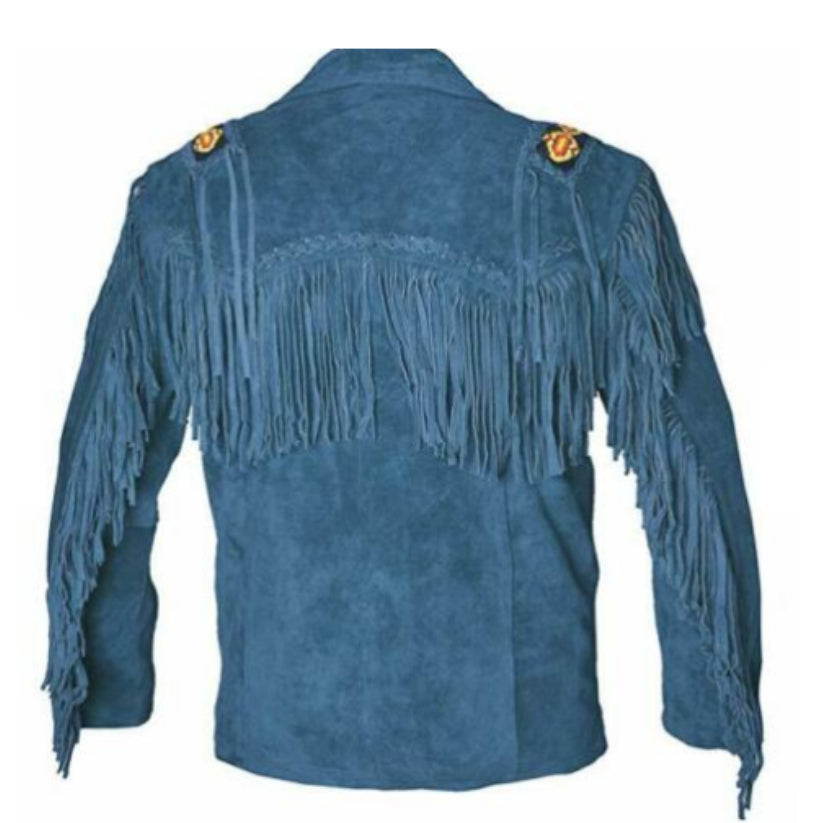 This classic men's leather jacket is handcrafted from top quality genuine leather with traditional Native American fringe and wooden bead detailing. The perfect combination of style and durability, this jacket is a must-have for any wardrobe.