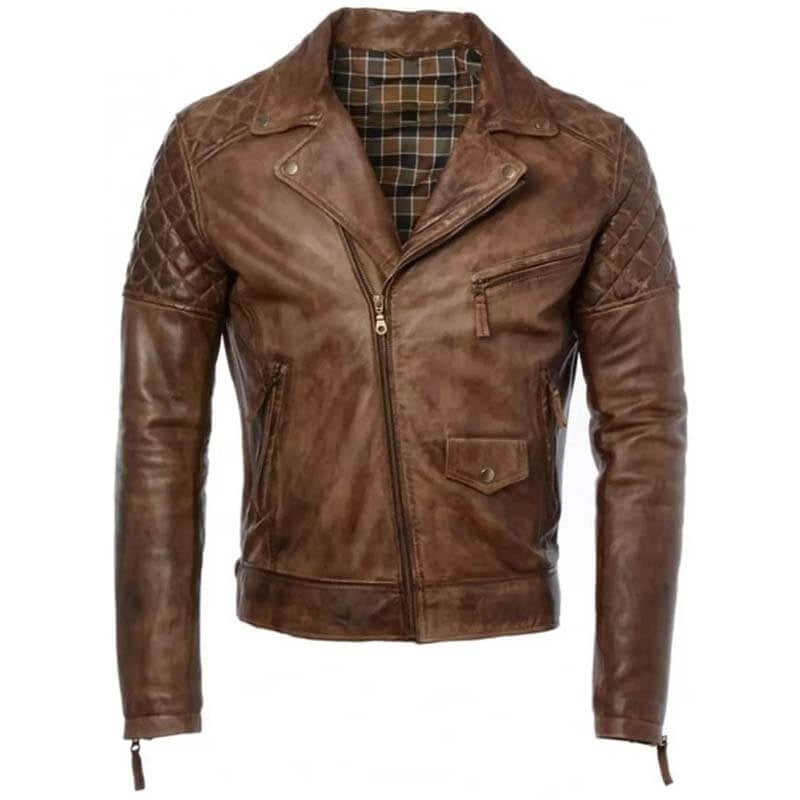 Men’s Distressed Brown Cafe Racer Biker Leather Jacket