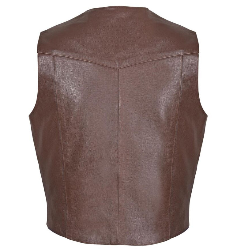 This men's fashion brown leather biker vest is a stylish and versatile addition to any wardrobe. Made with high-quality leather, it offers both durability and a classic look. The unique design and comfortable fit make it a perfect choice for any biker or fashion enthusiast.