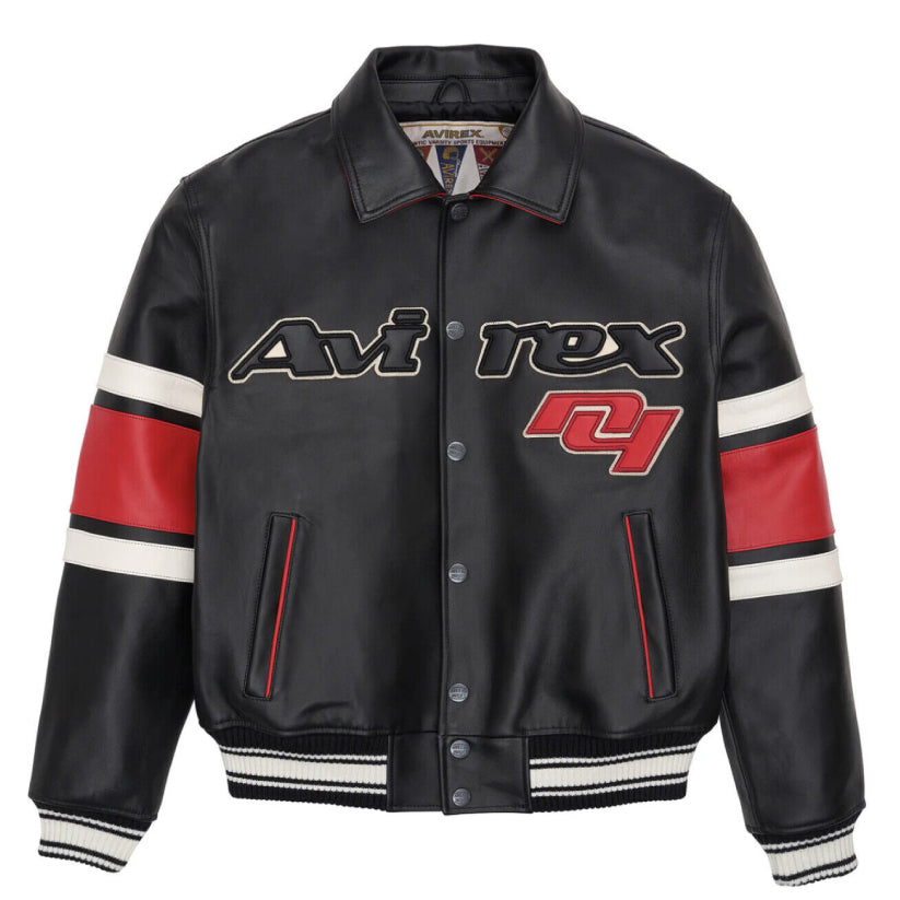 This men's Avirex Black Bomber Flight Jacket is the perfect choice for a stylishly classic look. Crafted with genuine leather and featuring a fit designed for optimal warmth and breathability, it ensures great comfort in any season. With functional details like a snap-front closure and ribbed trim, it's a must-have for any aviator's wardrobe.