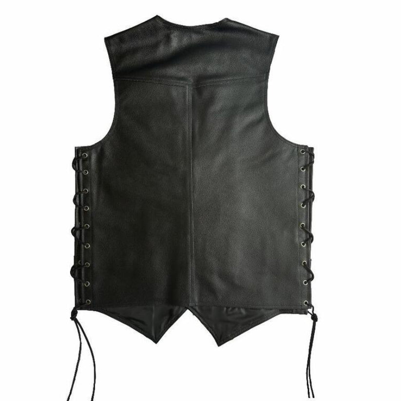 Men's Black Genuine Leather Motorcycle Biker Vest