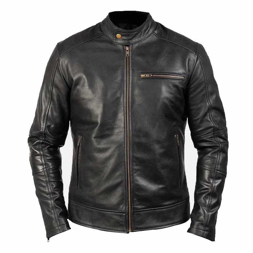 Mens Black Leather Cafe Racer Motorcycle Jacket