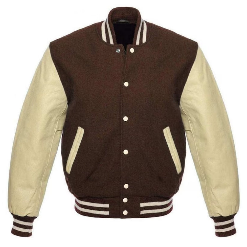 Men's Brown Wool & Cream Leather Sleeves Varsity Jacket