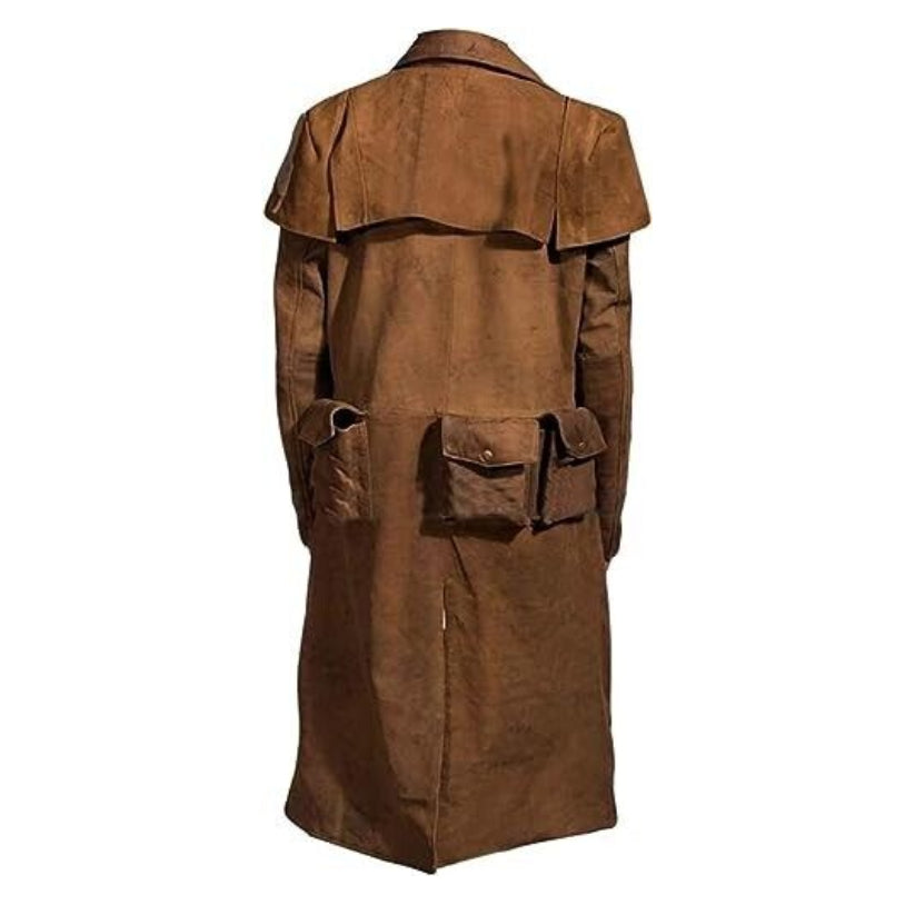 Experience the timeless style of the Men's Fallout Long Trench Coat. Crafted from a blend of cotton and polyester, this coat offers superior comfort and protection. With multiple pockets for storage, it's perfect for any everyday use. Keep warm in style!
