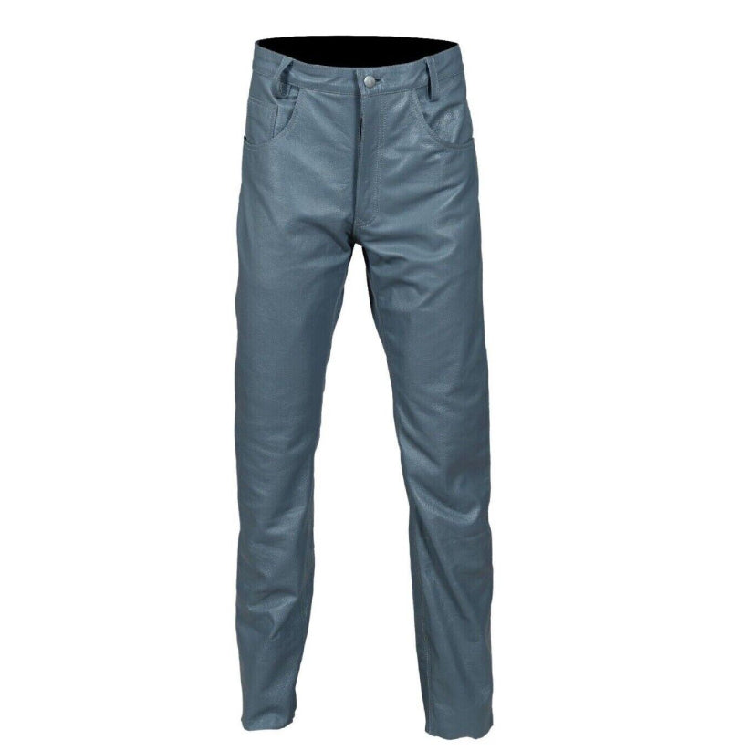 Men's Genuine Leather Pant Jeans Style 5 Pockets Motorbike Gray Pants
