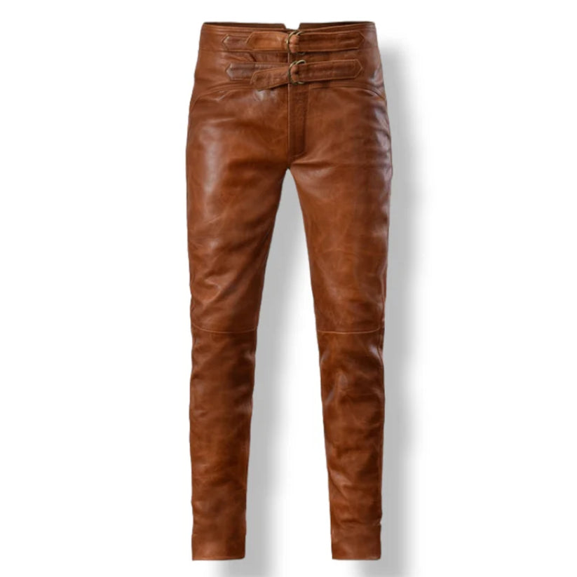 Add timeless style to your wardrobe with these men's handmade brown leather pants. Crafted from 100% genuine leather, these pants are designed to last for years, offering superior comfort and durability. The perfect addition to any wardrobe.