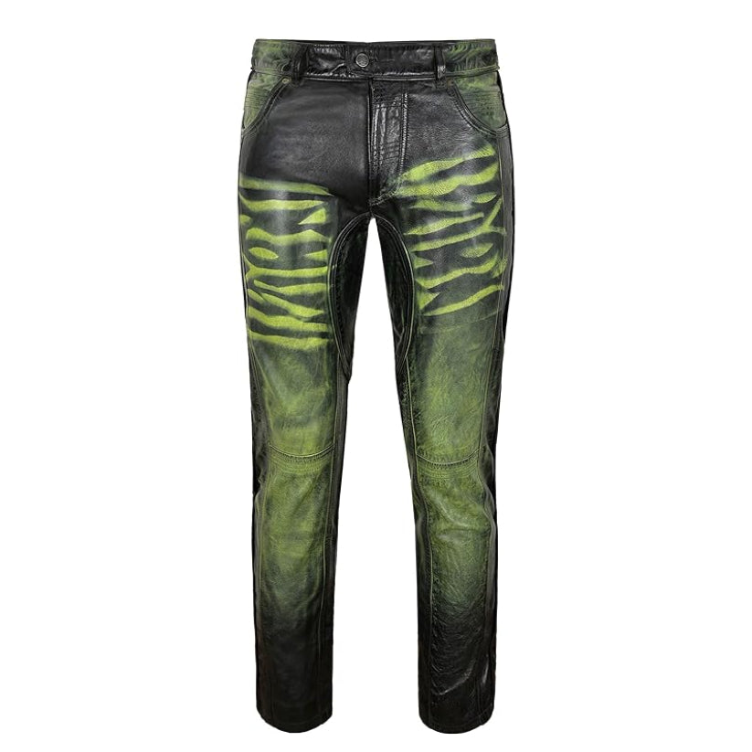 Crafted from high-quality, real leather, these men's leather pants are designed to provide lasting comfort and style. The green waxed finish adds a touch of sophistication, while the sturdy construction ensures durability. Perfect for any occasion, these pants offer both functionality and fashion.