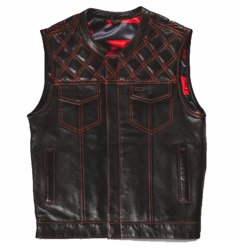 Mens Leather Vest Diamond Quilted Red Colour Vest