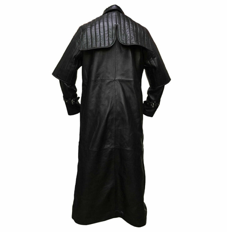 Mens Pure Black Leather Steampunk Trench Coat Duster Matrix Hugh Jackman Coat