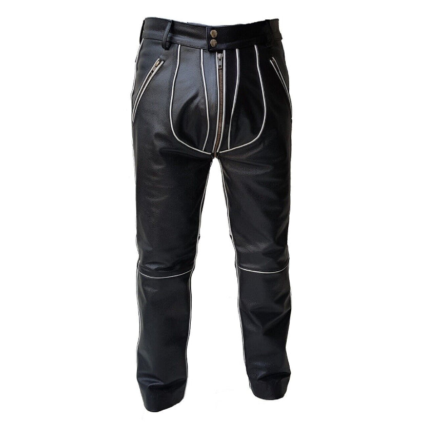 Upgrade your wardrobe with our Mens Real Black Leather Pants. Crafted from genuine black leather, these pants offer durability and style for any occasion. Add a touch of luxury to your attire and experience the comfort and quality of real leather. Perfect for the modern man looking for a timeless, sleek look.