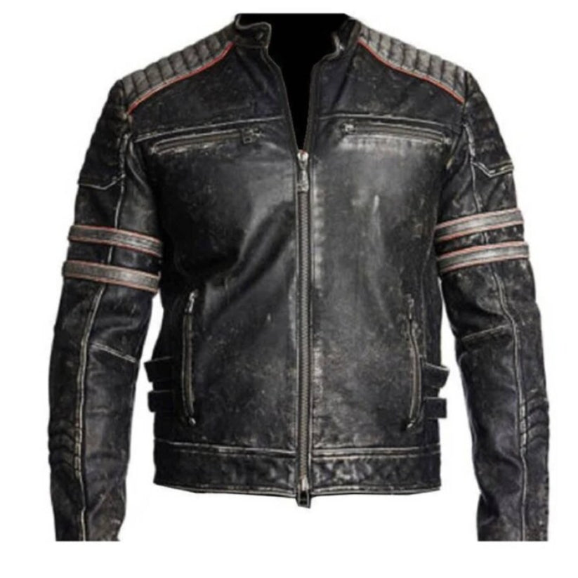 This men's rugged retro black distressed moto jacket combines timeless style with durability. Crafted with high-quality materials, this jacket features a distressed finish for a vintage look. Its rugged design ensures long-lasting wear, making it the perfect addition to any wardrobe.
