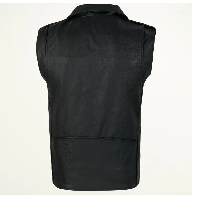 Men's Sleeveless Biker Style Classic Belted Genuine Leather Vest