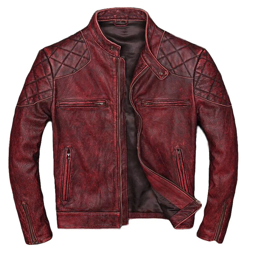 Men's Slim Fit Distressed Red Motorcycle Leather Jacket
