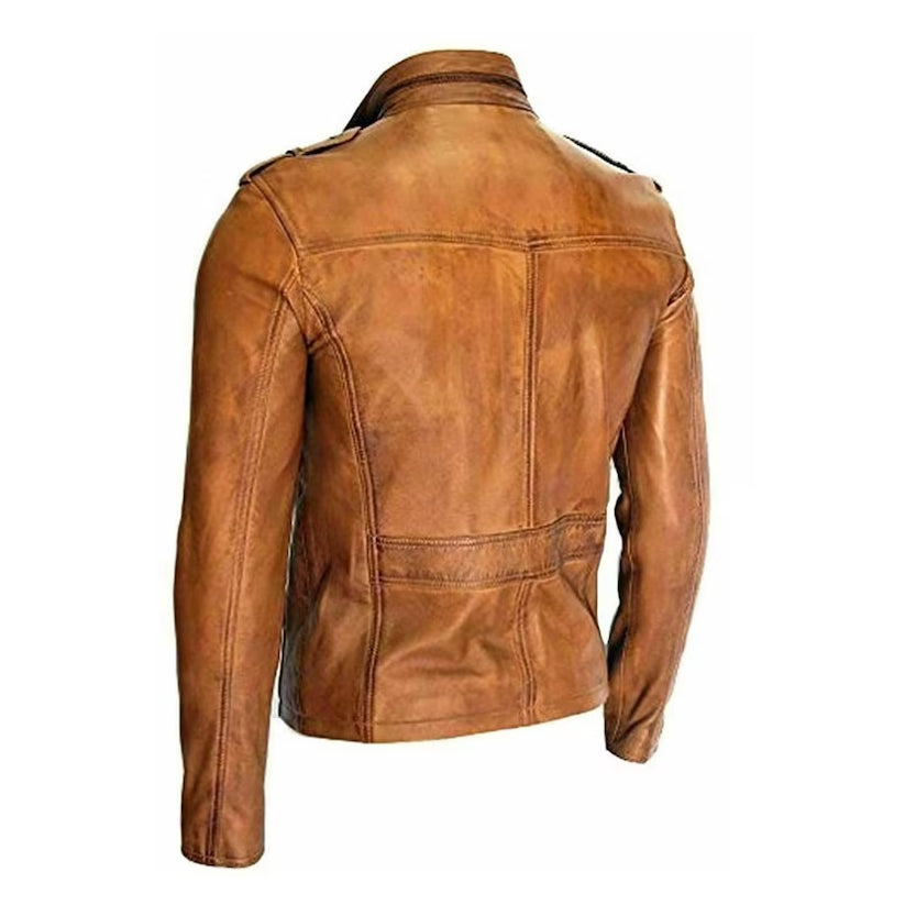 Men's Vintage Style Brown Biker Leather Jacket