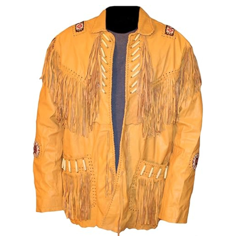 This men's western leather jacket is crafted of genuine cowhide leather that is both stylish and comfortable. It features two-tone fringing along the front and back for a look that will turn heads. The jacket is lined with soft cotton material to keep you warm and insulated. Perfect for everyday wear or special occasions.
