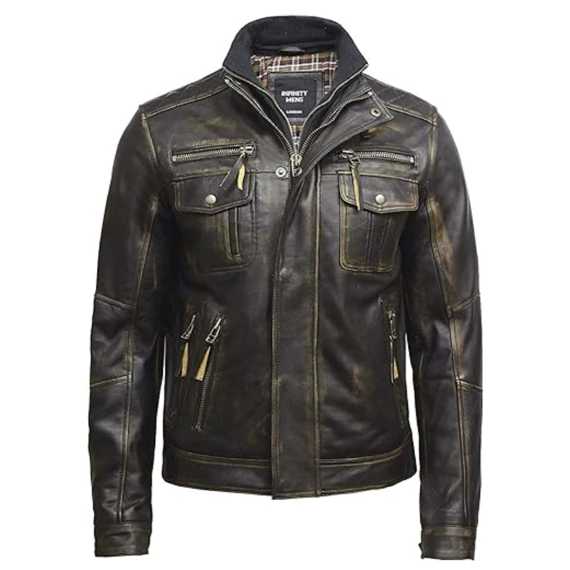 New Mens Black Distressed Leather Jacket