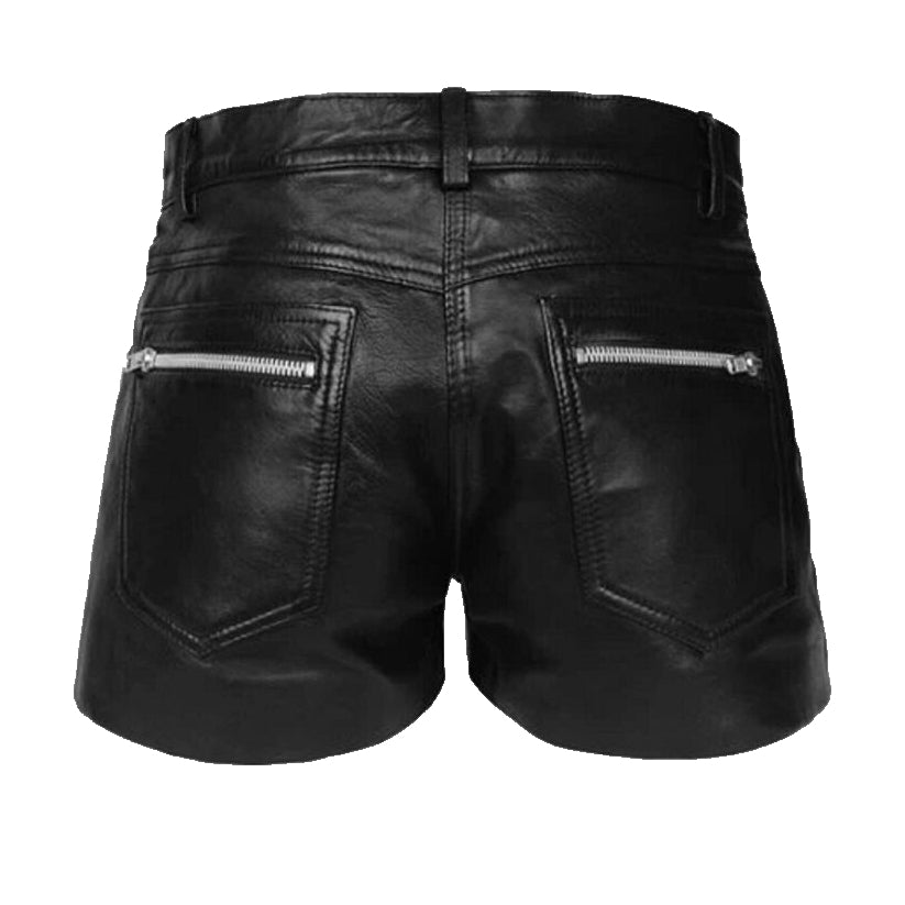 New Men's Black Zipper Leather Shorts