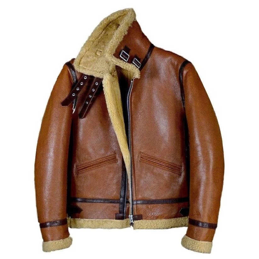 This New Men's Brown RAF Aviator Jacket is perfect for those looking for a classic aviation look. It features a premium soft brown leather exterior, a cotton lining, and ribbed knit cuffs and hem to keep you warm and comfortable. A timeless piece of apparel that will always be in style.