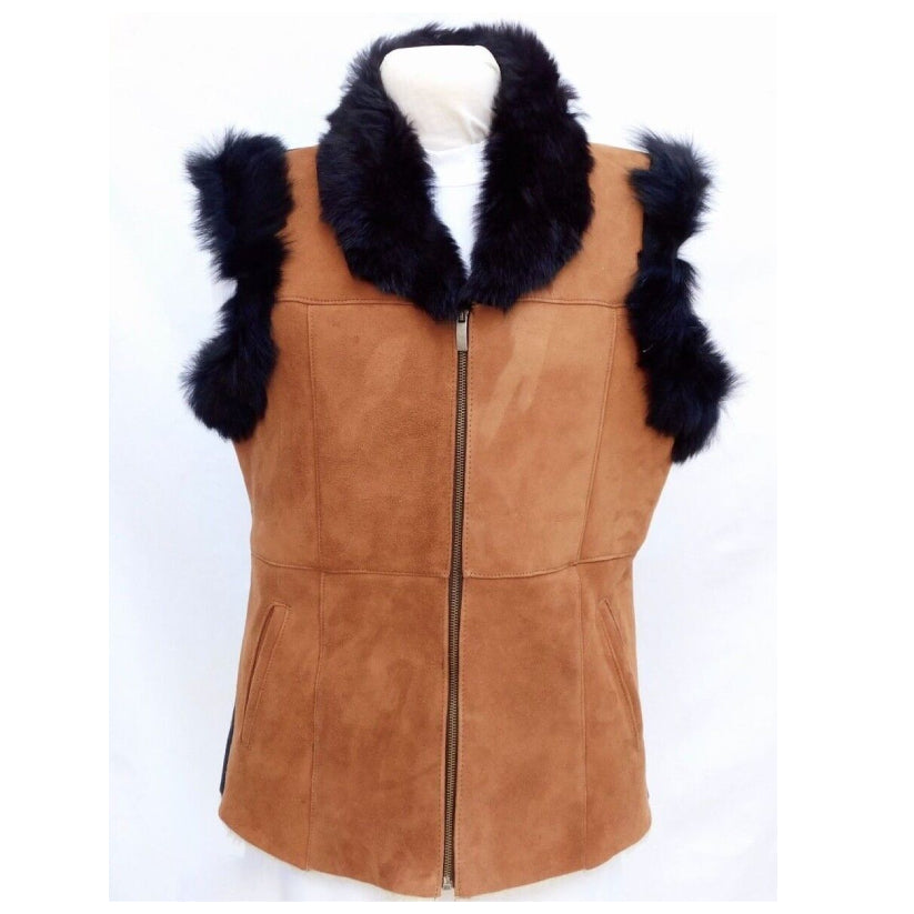Real Sheepskin Shearling Goat Fur Leather Winter Warm Womens Vest
