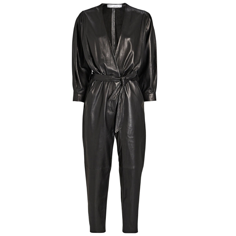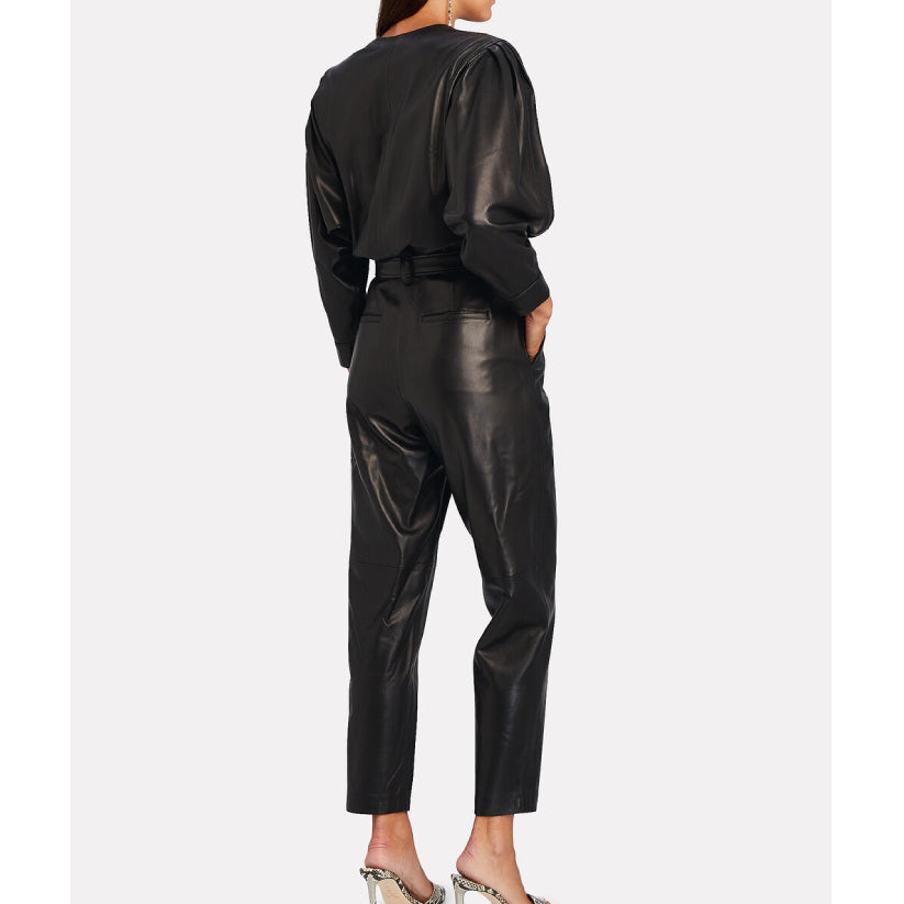 Women Black Leather Jumpsuit