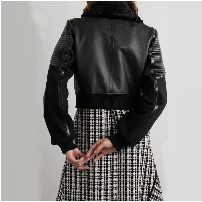 Women Black Shearling Aviator leather jacket