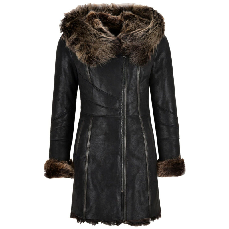Introducing our Women's Shearling Coat, perfect for staying stylish and warm during the winter months. Made from high-quality materials, this black coat is both fashionable and functional. With its shearling lining, it provides superior insulation and comfort. Stay cozy and chic all season long with our Women's Shearling Coat.