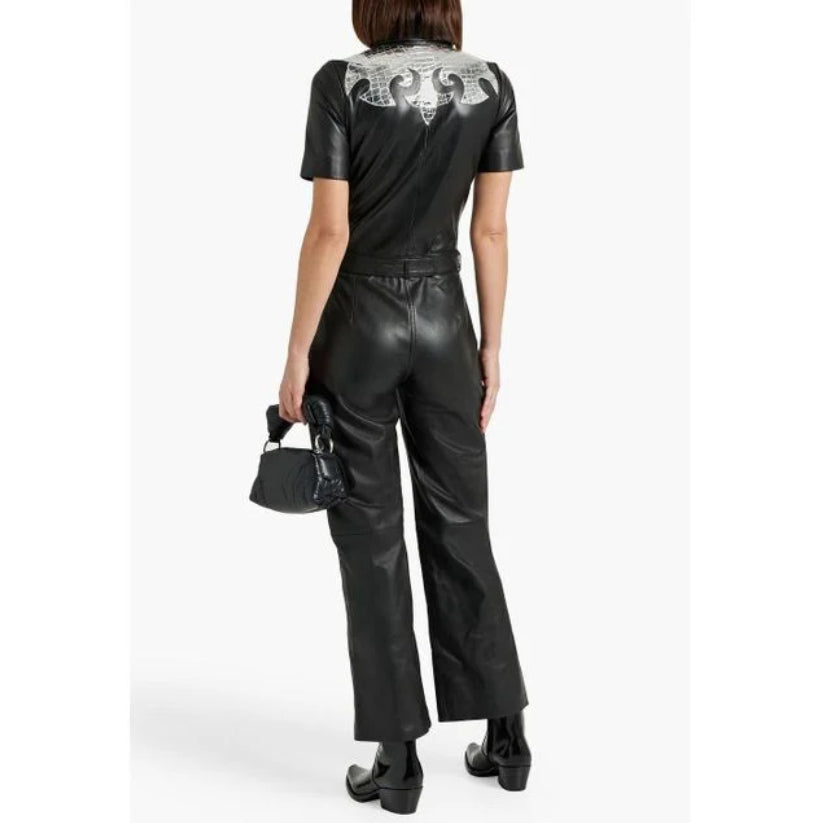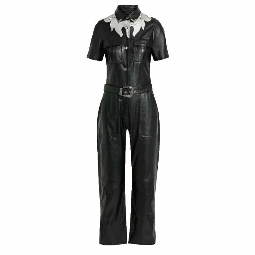 Women's Black Belted Leather Jumpsuit
