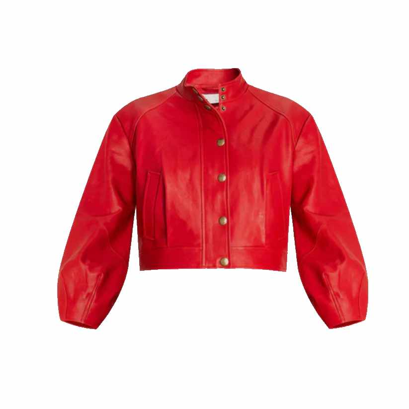 Crafted from high quality leather, this cropped jacket adds a bold touch to any outfit. Designed for women, its unique red color stands out while its stylish cut flatters any body type. Make a statement and elevate your style with this designer piece.